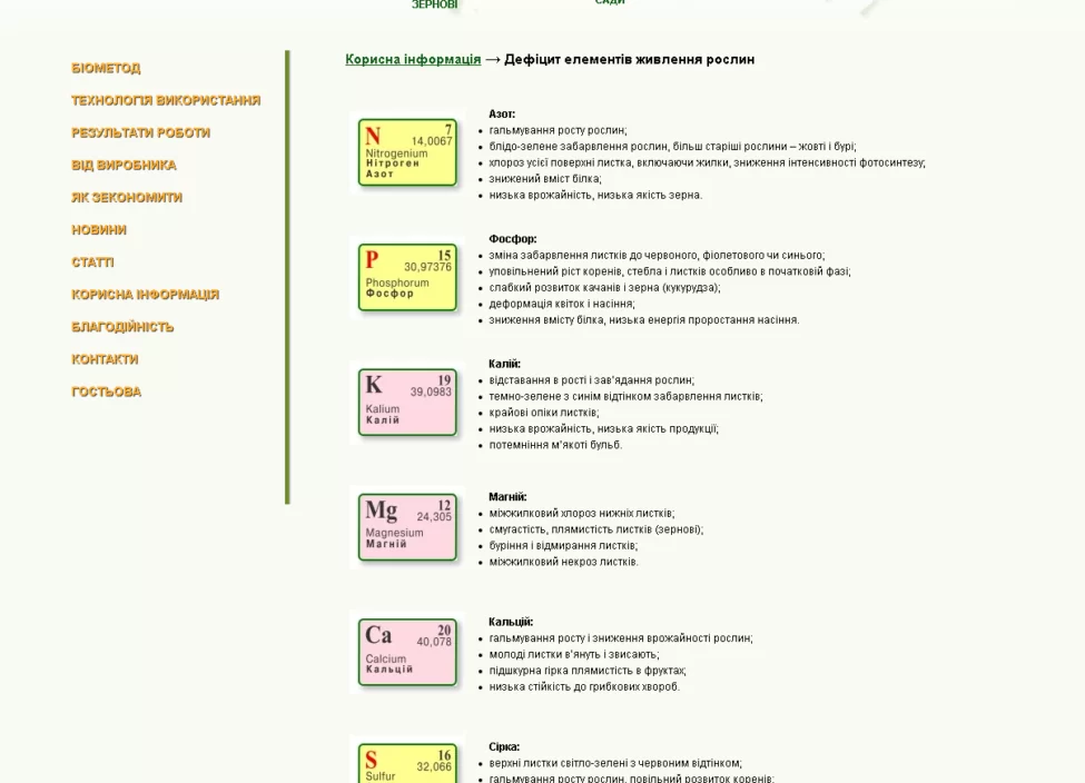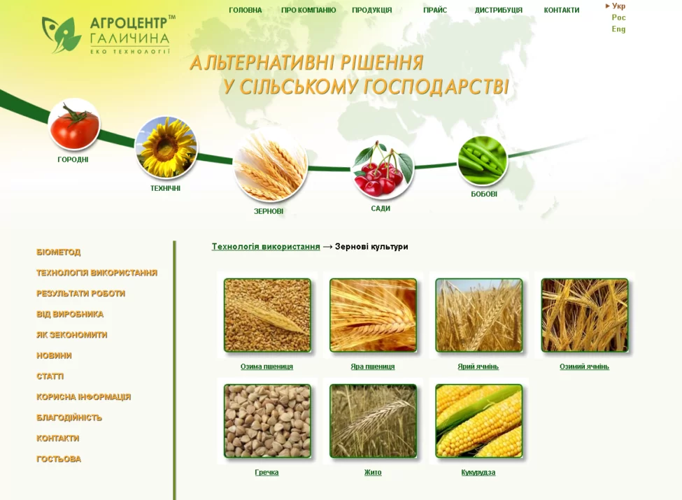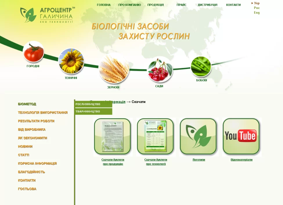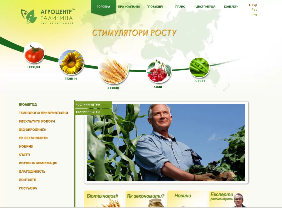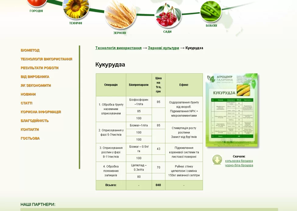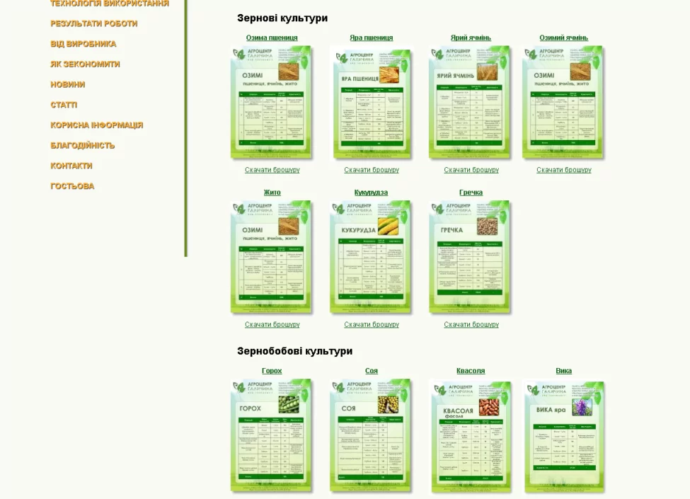 Наповення існуючого сайту продукцією, створення таблиць використання, розробка іконок, брошур для Агроцентра Галичина
