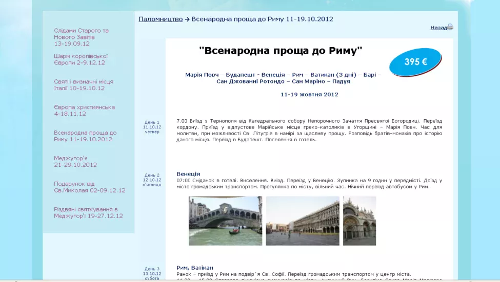 Наповнення сайту туристичної фірми детальними описами турів, проставити ціни, підібрати фото до турів тощо. Сайт виконано веб-студією Власне інфо.