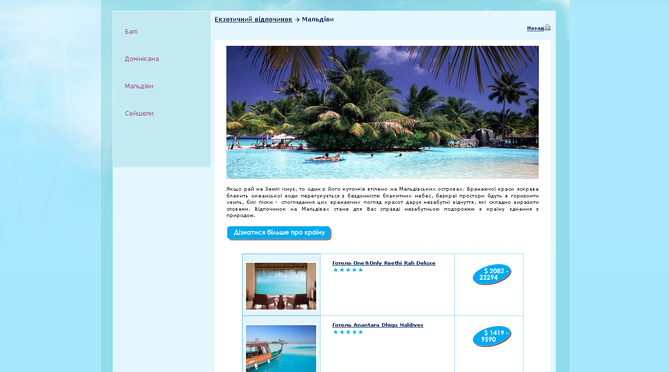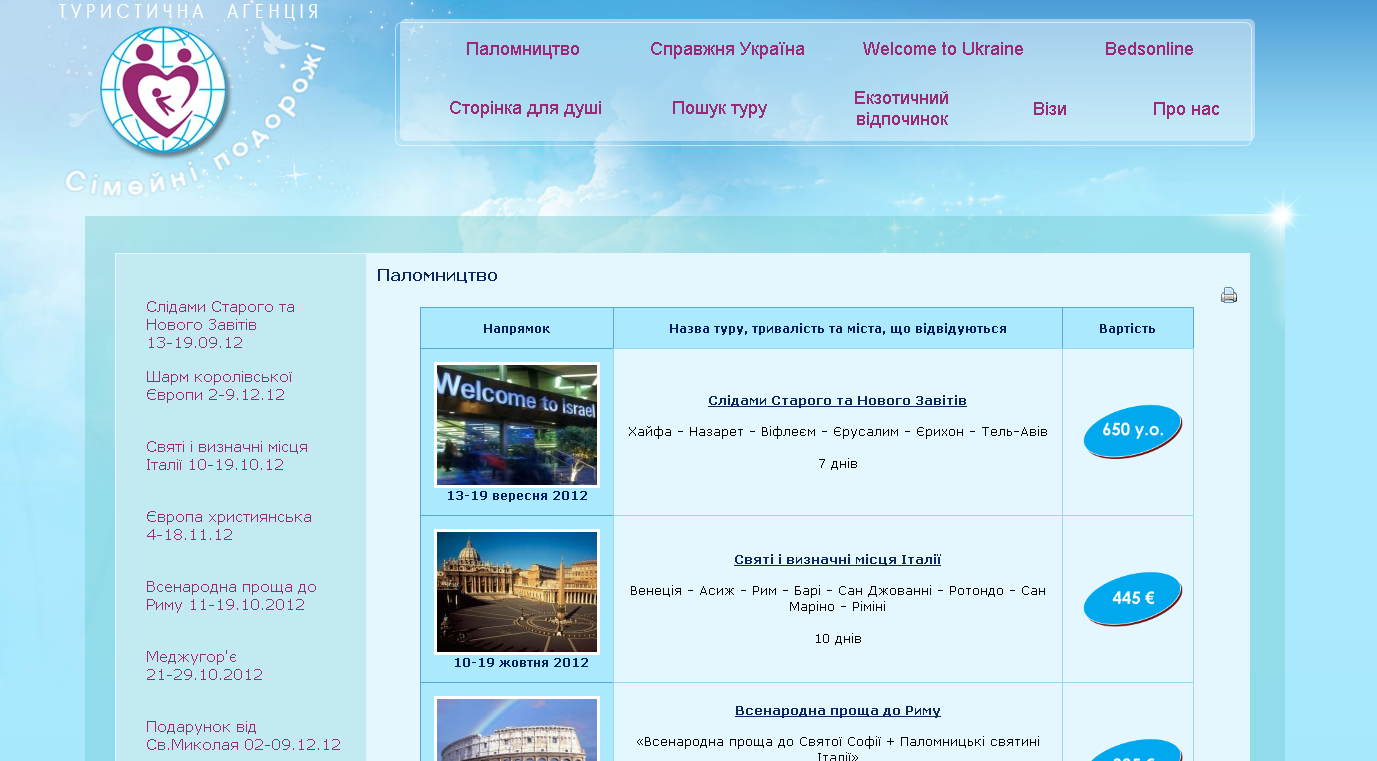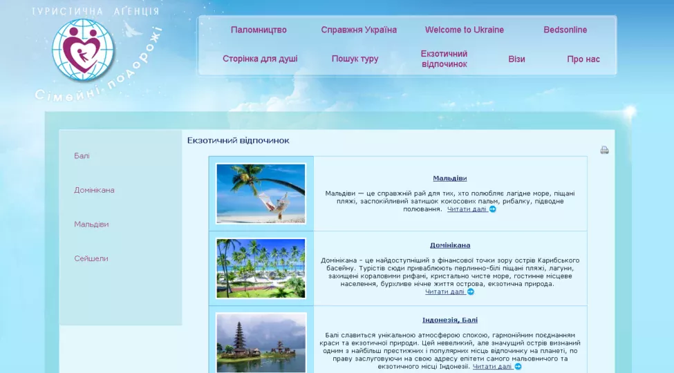 Наповнення сайту туристичної фірми детальними описами турів, проставити ціни, підібрати фото до турів тощо. Сайт виконано веб-студією Власне інфо.