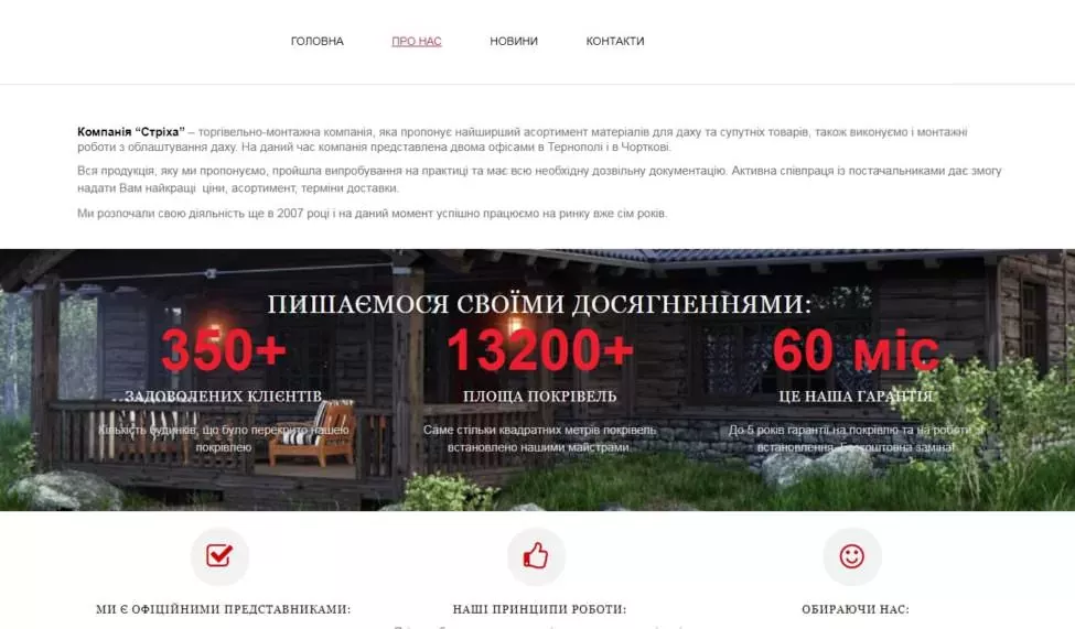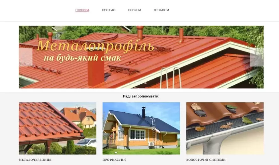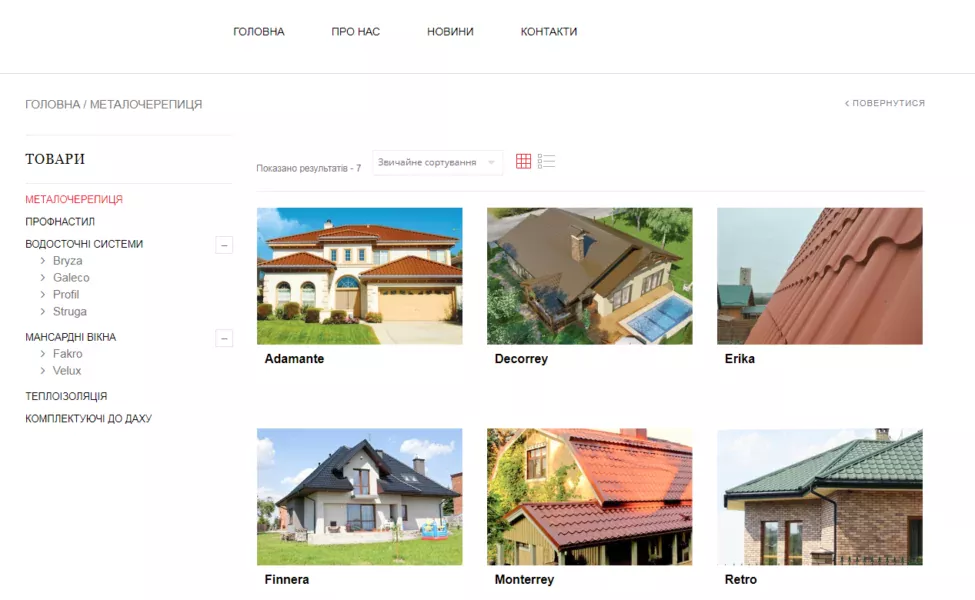 • Створення невеликого сайту з каталогом товарів – покрівельних матеріалів